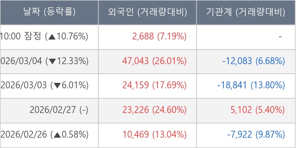 [표] 외국인ㆍ기관 순매매량 (단위 주)