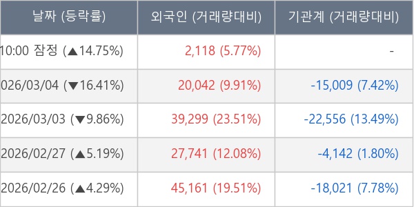 [표] 외국인ㆍ기관 순매매량 (단위 주)