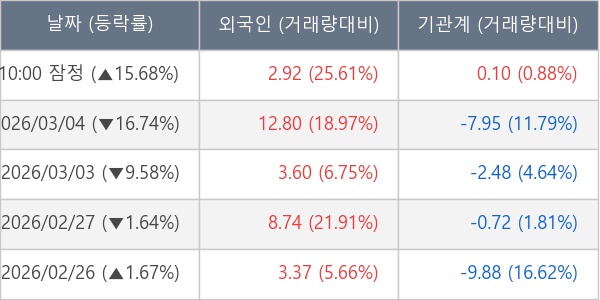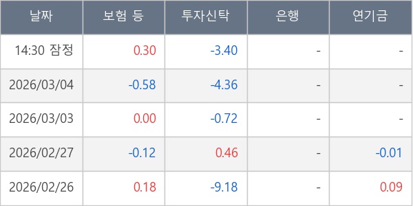 [표] 주요 기관별 순매매량 (단위 만주)
