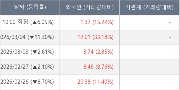 [표] 외국인ㆍ기관 순매매량 (단위 만주)