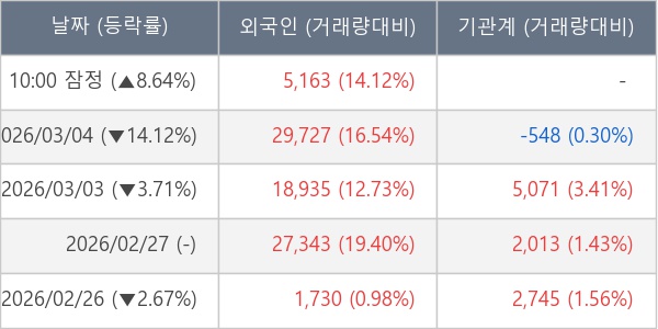 [표] 외국인ㆍ기관 순매매량 (단위 주)