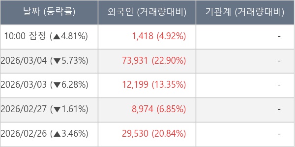 [표] 외국인ㆍ기관 순매매량 (단위 주)