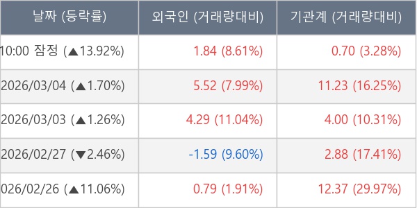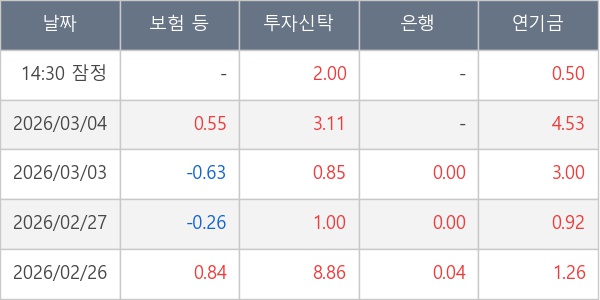 [표] 주요 기관별 순매매량 (단위 만주)