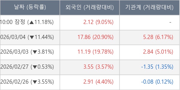 [표] 외국인ㆍ기관 순매매량 (단위 만주)