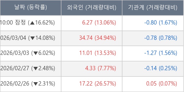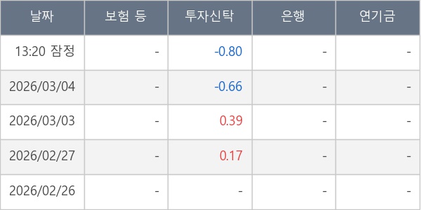 [표] 주요 기관별 순매매량 (단위 만주)