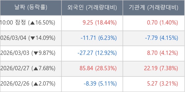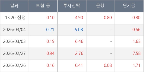 [표] 주요 기관별 순매매량 (단위 만주)