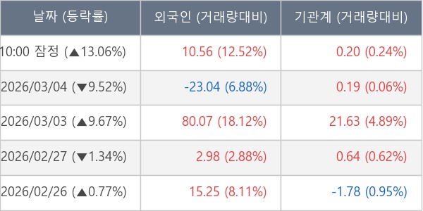 [표] 외국인ㆍ기관 순매매량 (단위 만주)