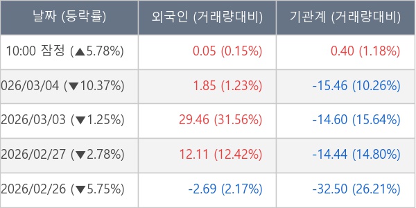 [표] 주요 기관별 순매매량 (단위 만주)