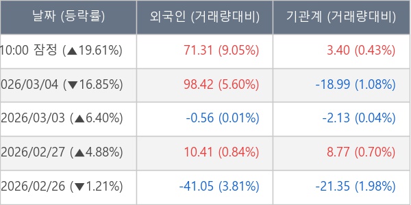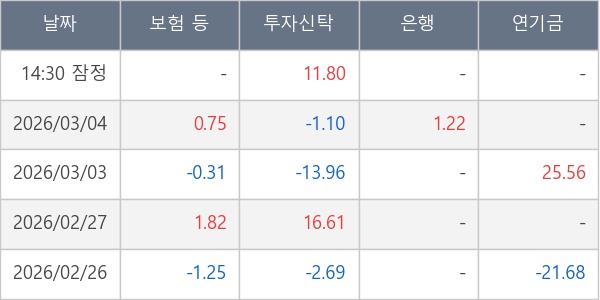 [표] 주요 기관별 순매매량 (단위 만주)