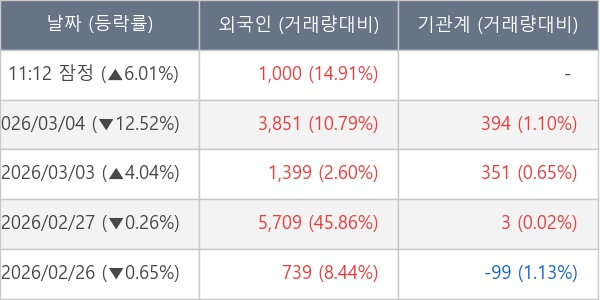 [표] 외국인ㆍ기관 순매매량 (단위 주)