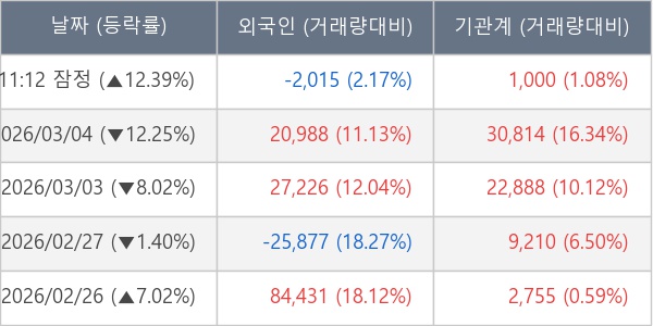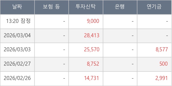 [표] 주요 기관별 순매매량 (단위 주)
