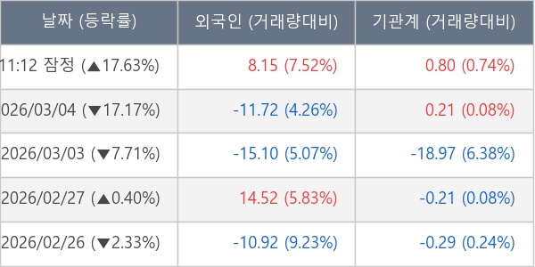 [표] 외국인ㆍ기관 순매매량 (단위 만주)
