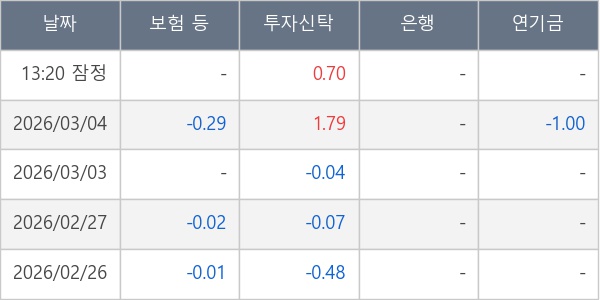 [표] 주요 기관별 순매매량 (단위 만주)
