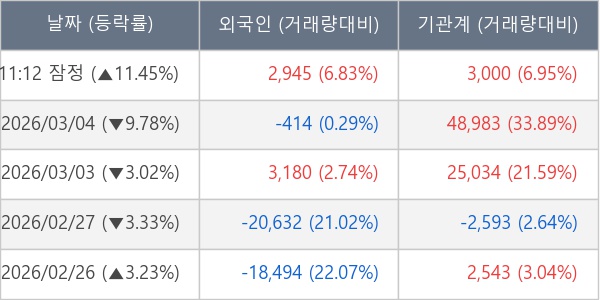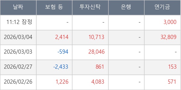 [표] 주요 기관별 순매매량 (단위 주)