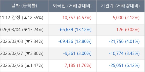 [표] 외국인ㆍ기관 순매매량 (단위 주)