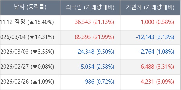[표] 외국인ㆍ기관 순매매량 (단위 주)