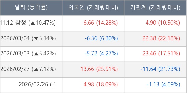 [표] 외국인ㆍ기관 순매매량 (단위 만주)