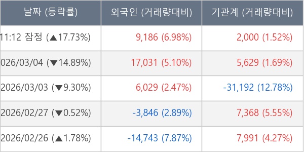 [표] 외국인ㆍ기관 순매매량 (단위 주)