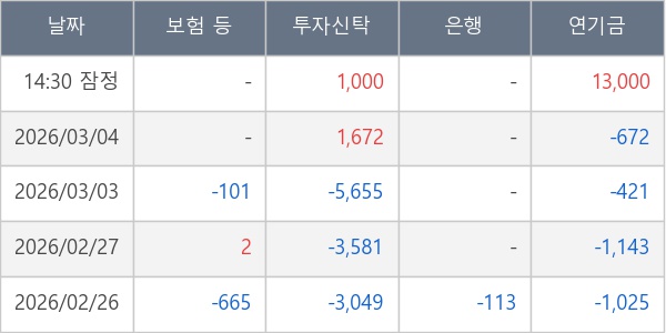 ※ 사모펀드 등 일부 기관의 순매매량은 표시되지 않음