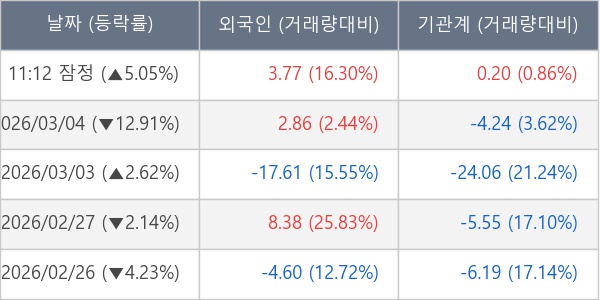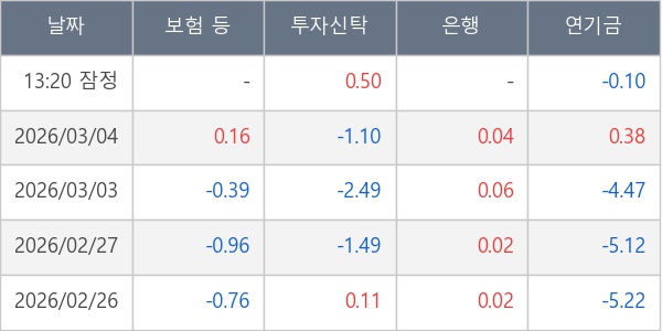 [표] 주요 기관별 순매매량 (단위 만주)