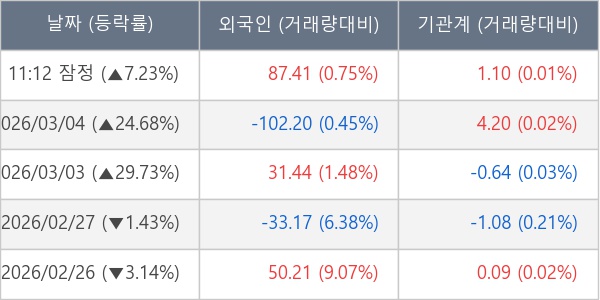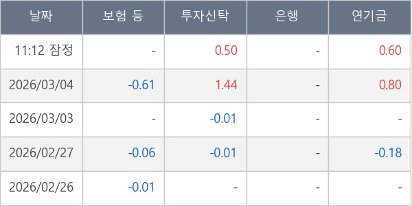 [표] 주요 기관별 순매매량 (단위 만주)
