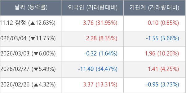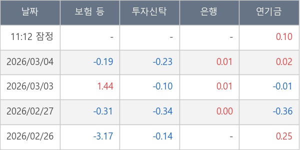 [표] 주요 기관별 순매매량 (단위 만주)