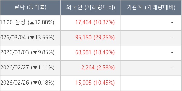 [표] 외국인ㆍ기관 순매매량 (단위 주)