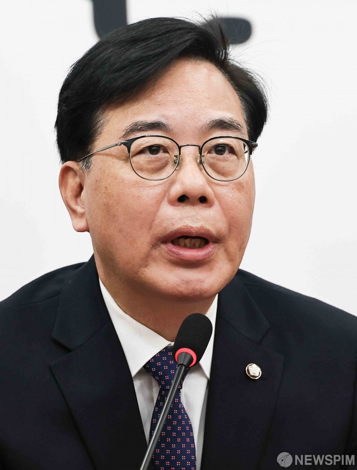 [서울=뉴스핌] 윤창빈 기자 = 송언석 국민의힘 원내대표가 5일 오후 서울 여의도 국회에서 열린 최고위원회의에서 모두발언을 하고 있다. 2026.03.05 pangbin@newspim.com