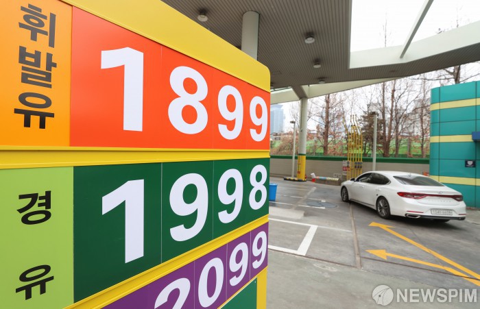 [서울=뉴스핌] 류기찬 기자 = 미국과 이스라엘의 이란 공습으로 중동 지역의 군사적 긴장이 고조되고 있는 가운데 국제유가가 급등하면서 서울 일부 주유소의 경유 가격이 휘발유 가격을 넘어선 ‘가격 역전’ 현상이 나타나고 있다. 사진은 5일 오후 서울 시내의 한 주유소 가격표의 모습. 2026.03.05 ryuchan0925@newspim.com