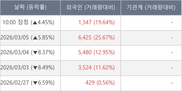 [표] 외국인ㆍ기관 순매매량 (단위 주)