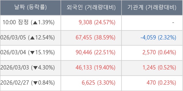 [표] 외국인ㆍ기관 순매매량 (단위 주)