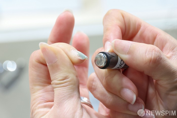 [서울=뉴스핌] 류기찬 기자 = 6일 오전 서울 강남구 세텍에서 열린 ‘네일엑스포 코리아’를 찾은 관람객들이 네일 제품들을 체험하고 있다. 2026.03.06 ryuchan0925@newspim.com