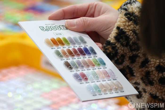 [서울=뉴스핌] 류기찬 기자 = 6일 오전 서울 강남구 세텍에서 열린 ‘네일엑스포 코리아’를 찾은 관람객들이 네일 제품들을 살펴보고 있다. 2026.03.06 ryuchan0925@newspim.com