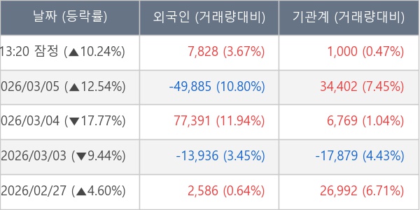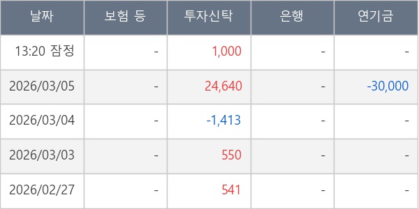 [표] 주요 기관별 순매매량 (단위 주)