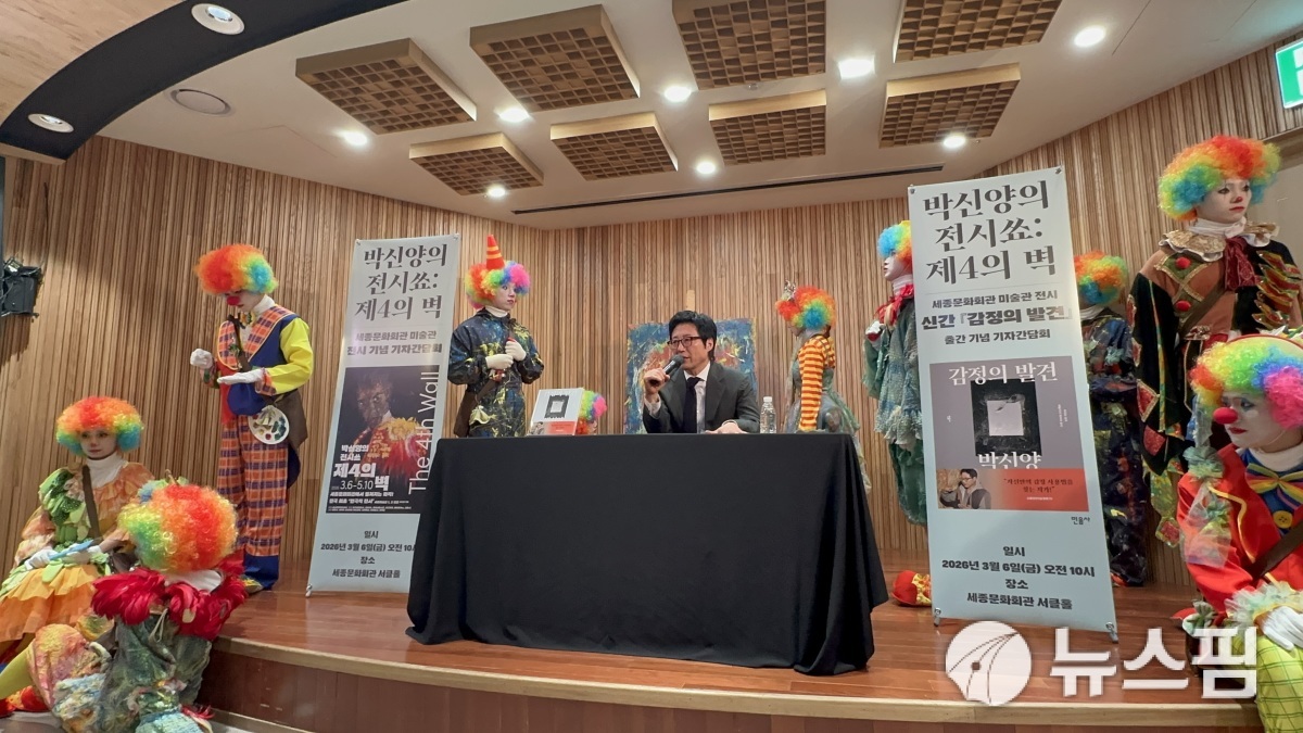 [서울=뉴스핌] 이지은 기자 = 세종문회화관 서클홀에서 전시 '박신양의 전시쑈: 제4의 벽' 및 신간 '감정의 발견' 출간 기자간담회에 참석한 박신양. [사진=이지은 기자] 2026.03.06 alice09@newspim.com