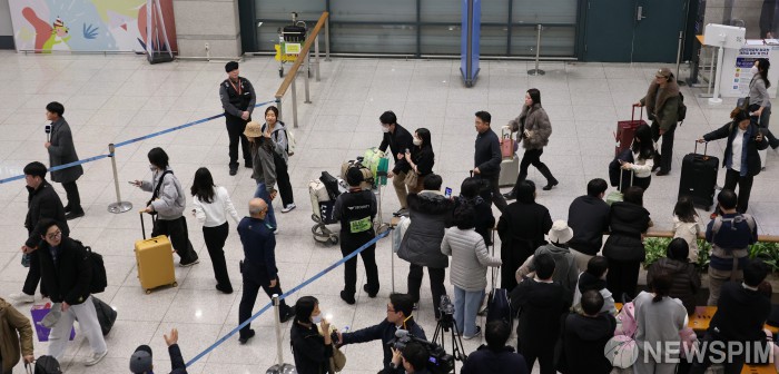 [영종도=뉴스핌] 이형석 기자 = 두바이에 여행을 떠났다 중동 전쟁으로 발이 묶였던 여행객이 6일 인천공항을 통해 귀국하고 있다. 2026.03.06 leehs@newspim.com