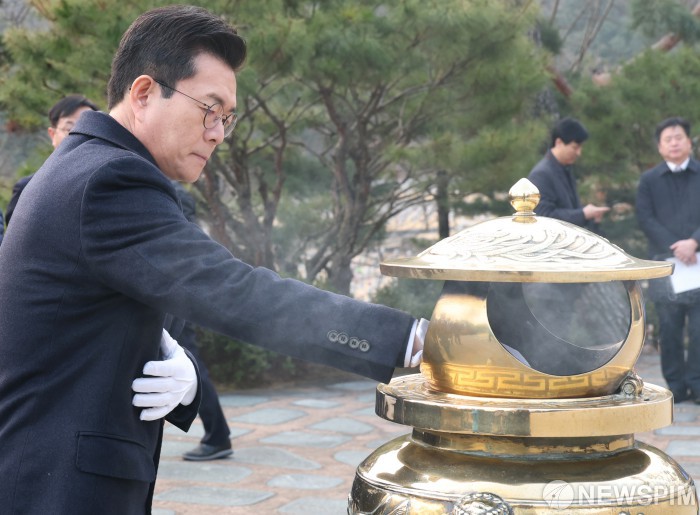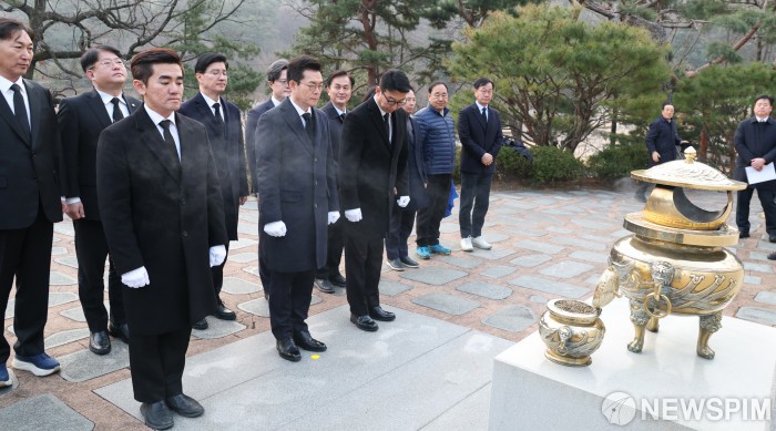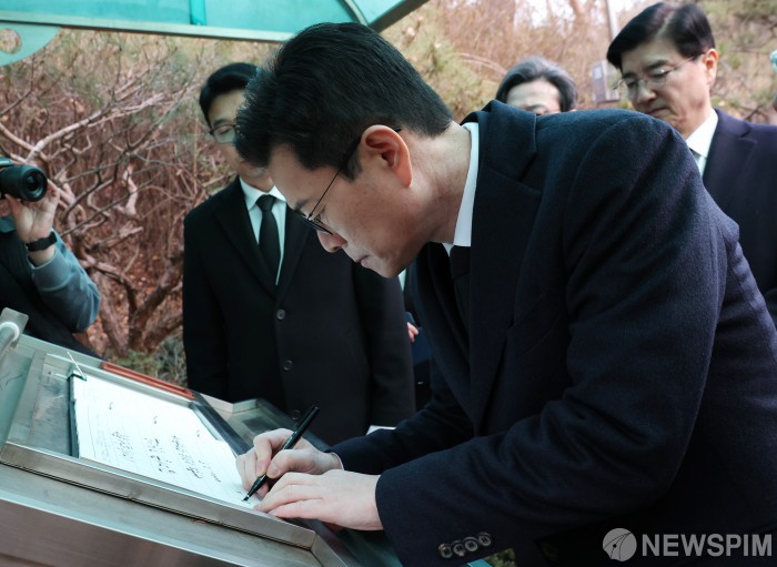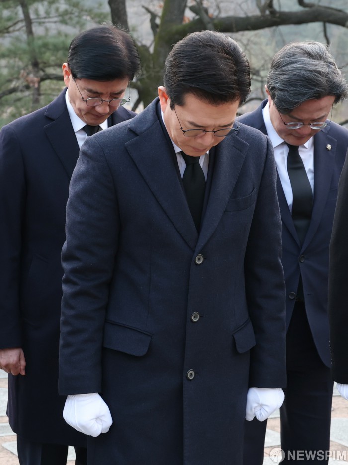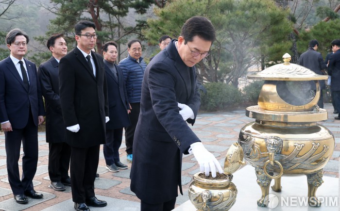[서울=뉴스핌] 김현우 기자 = 더불어민주당 서울시장 예비후보가 9일 서울 동작구 국립서울현충원 김대중 전 대통령 묘소를 참배하고 6.3 지방선거 행보를 시작했다.