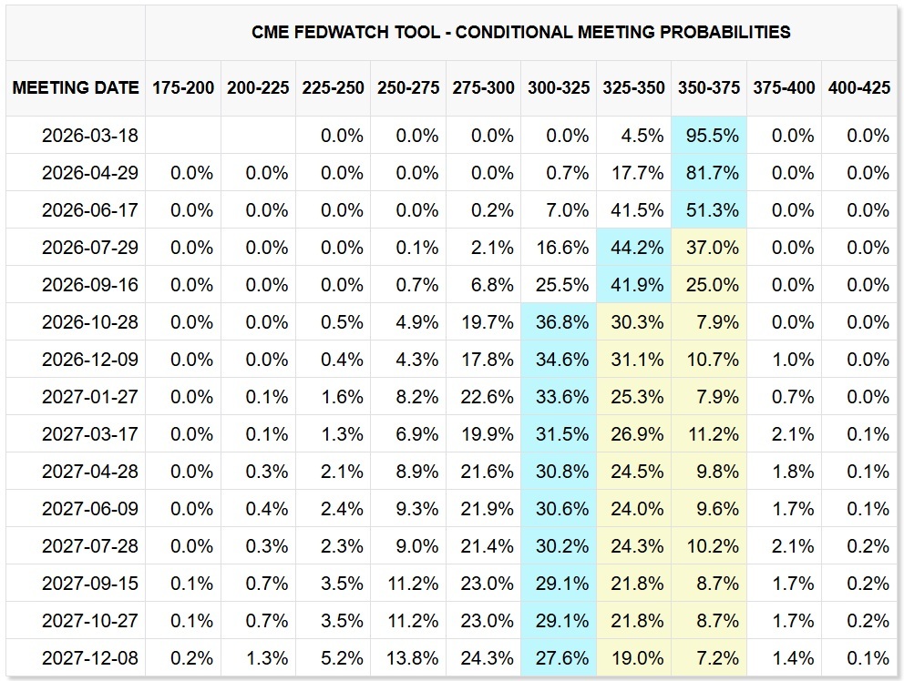 시카고상품거래소(CME) 페드워치에 따르면 투자자들은 연준이 지난 1월에 이어 이달 말 열리는 연방공개시장위원회(FOMC)에서도 기준금리를 동결할 확률을 95% 수준으로 반영하고 있다.