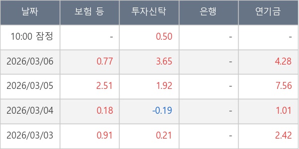 [표] 주요 기관별 순매매량 (단위 만주)