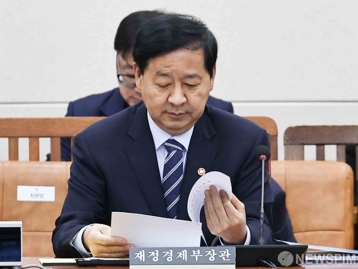 [서울=뉴스핌] 윤창빈 기자 = 구윤철 부총리 겸 재정경제부 장관이 9일 오후 서울 여의도 국회에서 열린 대미투자특별법 처리를 위한 특별위원회 전체회의에서 자료를 살펴보고 있다. 2026.03.09 pangbin@newspim.com