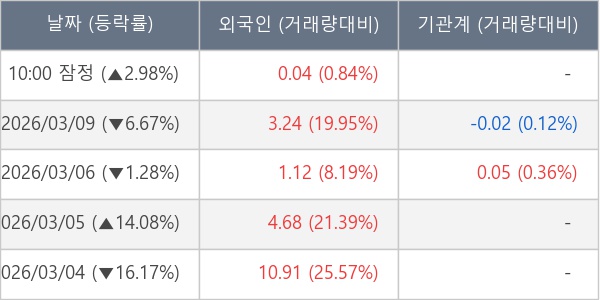 [표] 외국인ㆍ기관 순매매량 (단위 만주)
