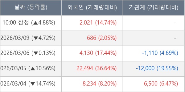 [표] 외국인ㆍ기관 순매매량 (단위 주)