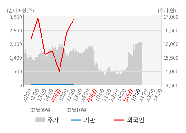 [서울=뉴스핌] 로보뉴스 = 10일 10시 15분 현재 원일티엔아이(136150)는 전일 대비 4.88% (현재가 15,890원) 상승했고, 외국인이 최근 6일 연속 순매수(누적 37,975주, 잠정) 행진을 하고 있다.