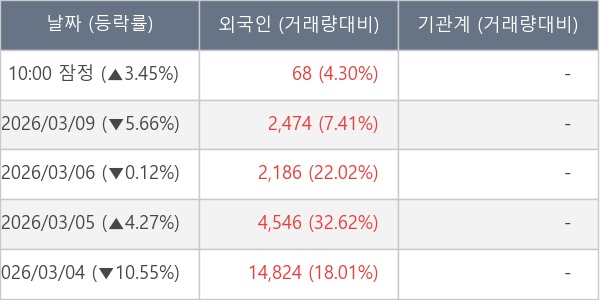 [표] 외국인ㆍ기관 순매매량 (단위 주)