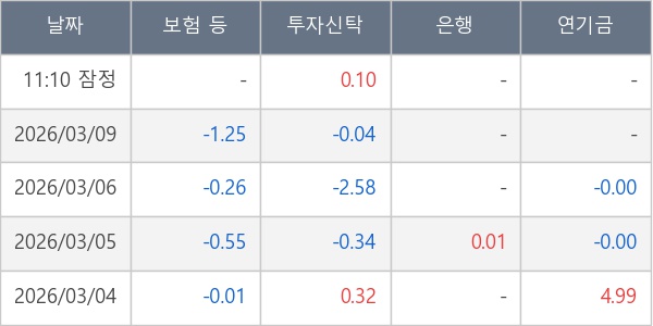 ※ 장중 매매동향은 잠정치이므로 실제 매매동향과 차이가 발생할수 있음