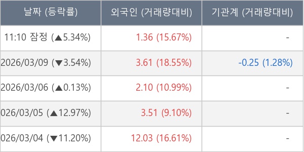 [표] 외국인ㆍ기관 순매매량 (단위 만주)
