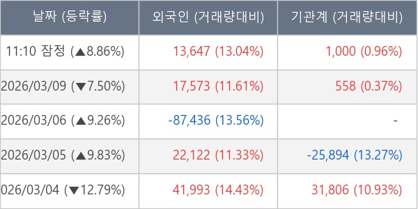 [표] 외국인ㆍ기관 순매매량 (단위 주)