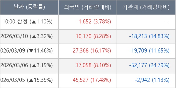 [표] 외국인ㆍ기관 순매매량 (단위 주)
