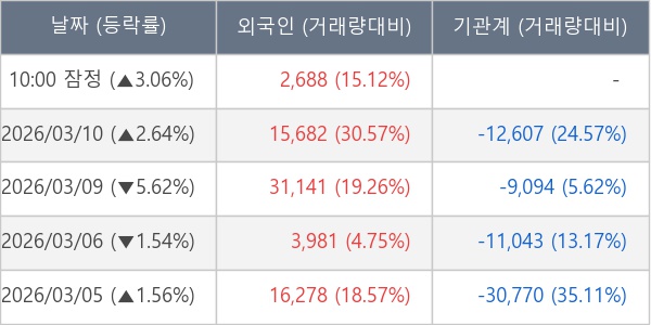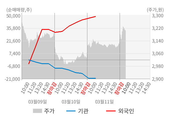 [표] 외국인ㆍ기관 순매매량 (단위 주)