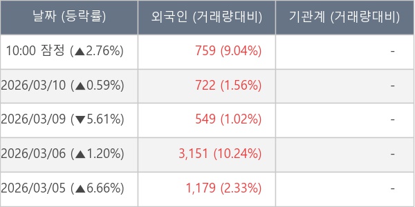 [표] 외국인ㆍ기관 순매매량 (단위 주)
